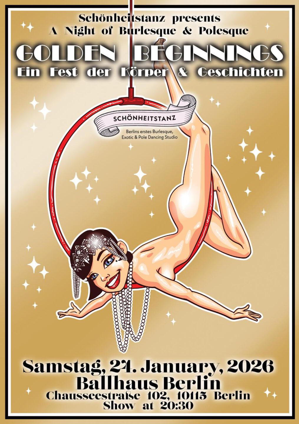 Unsere nächste “A night of Burlesque and Polesque” feiern wir am Samstag, den 24. Januar 2026, im Ballhaus Berlin.
